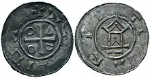 • Otto Adelheid Pfennig is an Ottonian coin type. Numismatist Bernd Kluge opines that the coin was struck when Otto III was still a very young emperor. Adelaide was with him because she was "the Saxonian Dynasty incarnate".[26]