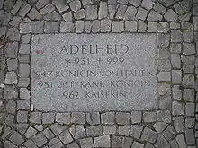 In 2007, a FrauenOrt in Magdeburg was created and dedicated to Adelaide together with Editha and Theophanu.[61]