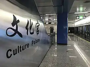 Culture Palace station (Chinese: 文化宫站; pinyin: Wénhuà Gōng zhàn) is a transfer station on Line 4 and Line 7 of the Chengdu Metro in China. It was opened on 26 December 2015.[1][2]