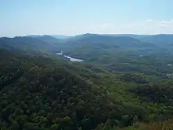 There are a number of large cliff systems in the park, the most prominent of which is the 500 feet (150 m) cliffs of White Rocks, located in the eastern portion of the area.[6]:34[10] At the northeastern end, the park sits adjacent to the Sillalah Creek Wildlife Management Area and the Martin's Fork Wildlife Management Area and State Natural Area.[11][6]:27