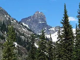 Cutthroat Peak is an 8,050-foot-elevation (2,450-meter) granitic mountain located on the boundary of Chelan County and Skagit County, in Washington state.[4] The mountain is part of the Okanagan Range which is a subset of the Cascade Range, and is situated within the Okanogan-Wenatchee National Forest. Cutthroat Peak is about two miles west of Washington Pass and one mile east of Rainy Pass. It's a prominent landmark along the North Cascades Highway with an accessible climbing route (South Buttress class 5.8). There is also a Cutthroat Lake, Cutthroat Creek, and Cutthroat Pass on its north and east aspects. This geographical feature's name was officially adopted in 1988 by the United States Board on Geographic Names.[4] Molar Tooth is a granite pillar half a mile north on the ridge extending to Cutthroat Pass.