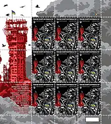 - ↑ "Укрпошта вшановує "кіборгів" Донецького аеропорту: 22 січня з'явиться поштова марка "Вони вистояли! Не витримав бетон!"". Укрпошта. Retrieved 20 February 2020.