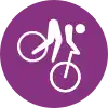 Pictograms from top, left to right: BMX Freestyle, BMX Racing, Road, Mountain and Track cycling.