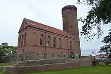 Human settlement in Człuchów dates back to prehistoric times. Several traces of the Lusatian and Pomeranian cultures were discovered during archaeological excavations within the town limits. The territory became part of the emerging Polish state in the 10th century under its first historic ruler Mieszko I. By the beginning of the 13th century Człuchów was a small settlement located at the intersection of two trade routes. In 1312 the Teutonic Knights purchased the settlement for 250 silver marks from Nicholas of Poniec, a son of the voivode of Kalisz. The Order began constructing a fortress known as Schlochau on a hill east of the settlement; the fortress, the Order's second-largest after Marienburg (Malbork), was completed in 1367. By 1323 it was used as a komturei (bailiwick) by the crusaders and consisted of three support buildings and the main castle. The fortress was so well-developed that Grand Master Heinrich von Dusemer granted the town Kulm law in 1348. In 1454, King Casimir IV Jagiellon reincorporated the town to the Kingdom of Poland, and then the Teutonic Knights renounced any claims in the peace treaty of 1466.[2] Człuchów was a county seat in the Pomeranian Voivodeship. The seat of local starosts was located in the castle. Many Jews immigrated to the town afterward, creating an enclosed Jewish quarter in the north of the town.