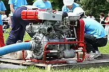 Czech fire sport (Czech: Požární sport) is a distinctively Czech sport.[1][2][3][4][5] Every Czech municipality has to establish a volunteer fire department in accordance with Regulation § 29 law nr. 133/1985 Sb. Consequently, a special subculture of volunteer firefighters developed, and later competitions in firefighter's skills were created. The sport is widespread and popular, especially in the countryside.