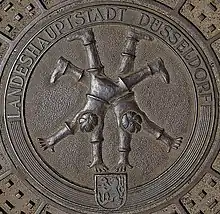 The Düsseldorf's cartwheeler (Radschläger in German) is the oldest tradition of Düsseldorf and became one of their famous landmarks. This tradition was honoured in 1954 by the erection of a fountain, called Cartwheeler's Fountain, in Düsseldorf's Burgplatz.[1]