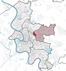 Grafenberg is an urban quarter of Düsseldorf, part of Borough 7. It borders to Gerresheim, Ludenberg, Flingern and Düsseltal. It has an area of 0.91 km2 (0.35 sq mi),[1] and 5,845 inhabitants (2020).[2]