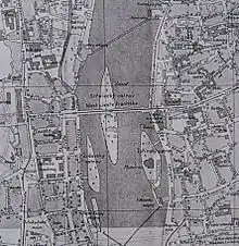 A 1910 map of the Vltava showing Dětský Island as "Židovský ostrov"