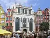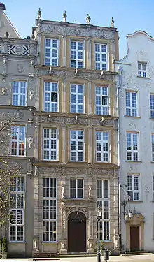| 41 | Golden House. It was built between 1609 and 1618 by Abraham van den Blocke.[13] Constructed for Johann Speymann, a wealthy grain trader and mayor of the city, and his wife Judith Bahr. The attic is decorated with sculptures depicting Cleopatra, Oedipus, Achilles and Antigone by Johann Vogt of Rostock. | ![]() |