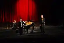 During 2012, the organizers of DAM Festival, faced many political and economical problems. This event was made possible by the support of Pristina Municipality[31] and other private donors. The main theme of the 2012 Festival was the relationship between arts, especially music, and politics and raising the awareness of what qualitative classical music is.[32] One of the most attention attracting performances was the one of the German band Sparks,[33] who opened the festival in an unusual way, by dancing and talking on the stage, that being their 100th performance. Another highlight of 2012's festival was that of 1 April. The Chloe Cailleton Trio, a mix of popular French music and jazz standard, took on the stage by serving to the audience a very spectacular performance. This trio included the vocalist and percussionist Chloe Cailleton, Ronan Court in contrabass and Armel Dupas in piano, their performance reaching the climax in the second part of their piece. Famous Kosovar pianist Lule Elezi and soprano Besa Llugiqi were among the national participants of 2012's Festival.[34][35]