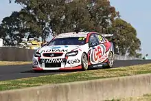 Wood's first track appearance in his Kelly Racing Commodore was at the V8 Supercars Official Category Test Day, at Winton Raceway on 9 March 2009, where he was joined by the other three Kelly Racing entries, and all other Victorian-based V8 Supercar teams.[6][7] At the test day, with the sponsorship of the car still to be confirmed, it ran in an interim testing livery, thanking the team for getting all four cars ready for the season in two months.[8]