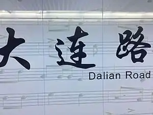 Dalian Road (simplified Chinese: 大连路; traditional Chinese: 大連路; pinyin: Dàlián Lù) is an interchange station between Line 4 and Line 12 of the Shanghai Metro. Service began on Line 4 on 31 December 2005,[1] while the interchange with Line 12 opened on 29 December 2013 with the initial, eastern section of that line from Tiantong Road to Jinhai Road.[2]