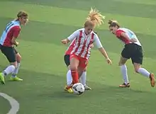 Damla Demirdön was called up to the Turkey women's U-19 national team, and debuted at the friendly match against Macedonia on 22 January 2006.[11] She participated at the UEFA Women's Under-19 Championship qualification round matches in 2007 and 2008.[12][13] She capped 15 times in total for the junior women's national team until September 2008.[1]