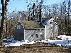 The oldest portion of this 2+12-story timber-frame house was built c. 1695 by Daniel Brooks. Its interior has retained many of its early 18th century features, including exposed beams, wide pine floorboards, and unbaked bricks used as insulation between inner and outer wall coverings. Eleazar Brooks, a descendant, was a prominent local politician at the time of the American Revolution.[2]