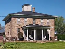The Italianate two-story farmhouse was built around 1860 from locally quarried limestone, and features a hipped roof with cupola on top. It is an example of the "Country Homes" style of Andrew Jackson Downing, a pioneer in American landscape architecture.[2][3]