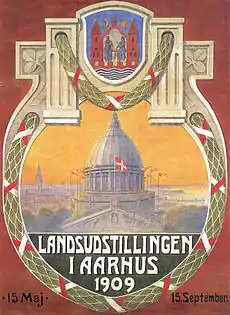 The Danish National Exhibition of 1909 or The National Exhibition in Aarhus 1909 (Danish: Landsudstillingen i Aarhus) was an industry, crafts and culture exhibition held in Aarhus, Denmark in 1909 from 18 May to 3 October. The exhibition displayed some 1850 individual works by architects, artists, craftsmen and businesses and attracted 650.000 visitors. The project was a large undertaking for the city with long-lasting effects on cultural institutions and short-term economic problems. The exhibition fairgrounds was named The white City (Danish: Den Hvide By) based on the architectural expression chosen by the leading architect Anton Rosen.