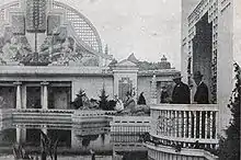 In spite of the long journey by sea some 1200 Danish-Americans arrived on the ocean steamer C.F. Tietgen. The city was decorated with Danish and American flags and the facade of the Art Hall was decorated with the same Stars and Stripes that had been used at the main entrance of the St. Louis World's Fair in 1904. The meeting became the precursor to the annual Rebild Festival every year on 4 July in north Jutland.[4]