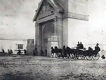 Architectural displays was a central element of exhibitions at the time and a separate Station Town had been erected to showcase best practices in construction and architecture. It was modeled to be an ideal small railway town and was complete with dairy, railway station, pharmacy, community centre and other structures. Additional villas had been constructed on nearby roads some of which were awarded as prizes in lotteries.[5]