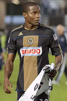 Mwanga was drafted the 1st overall pick of the 2010 MLS SuperDraft by the expansion Philadelphia Union.[6] He made his professional debut in the opening game of the 2010 MLS season, a 2–0 away loss against Seattle Sounders FC.[7] On May 15, he had his first MLS goal at Lincoln Financial Field against FC Dallas in stoppage time to earn the club a 1–1 draw. He also scored a second consecutive stoppage-time goal two weeks later against Houston Dynamo for the Union to win 3–2 away.[8] He scored seven goals in 24 games and was named Soccer America's Rookie of the year, as well a finalist for the MLS Rookie of the Year Award.[9]
