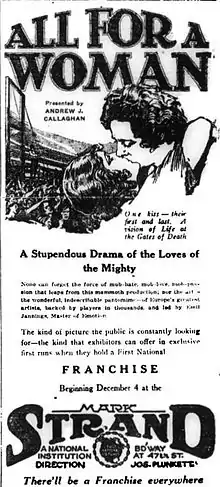 Danton is a 1921 German silent historical film directed by Dimitri Buchowetzki and starring Emil Jannings, Werner Krauss and Ossip Runitsch. The film was shot at the Johannisthal Studios in Berlin. It premiered at the Ufa-Palast am Zoo in the city on 4 May 1921.[1] It was based on the 1835 play Danton's Death by Georg Büchner.