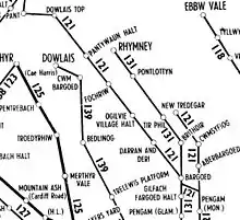 Map of rail lines in the Rhymney area, 1962