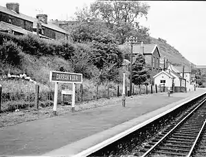 The station opened on 1 September 1868 and passenger services were withdrawn from 31 December 1962. Goods and mineral traffic continued until 1965, but coal traffic passed the station site until final closure of the line in 1975. This portion of line was double track and the station had up and down platforms, with a goods yard on the eastern side as well as connections to local collieries. The passenger service consisted in the 1960s of about ten trains a day in each direction, of which four ran between Brecon and Newport.[2]