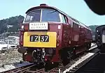 Class 52 1962 1977 - 1978 A 'Western' class diesel-hydraulic, Western Ranger was one of the last in operation, being withdrawn from Plymouth Laira in 1977. It was initially preserved at Kingswear before moving to the Severn Valley Railway in 1978.[35][36]