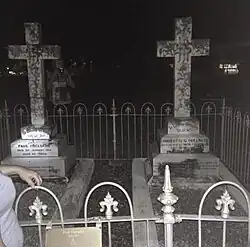 The cemetery contains many graves of people that helped establish Darwin. This includes the grave of John George Knight, one of the most senior officials in the Northern Territory at the time of his death.[4] There is also a monument to Edward (Ned) Tuckwell, buried in 1882, who along with his wife Eliza were involved in the pre-Darwin settlement at Escape Cliffs. Other prominent pioneering families are also buried in the cemetery including Spain, Brown and Bell.[2] Other significant graves include Paul Foelsche and his wife Charlotte, Foelsche led the Northern Territory Mounted Police and was noted as a recorder of Territory history through his writings and photography.[2] The cemetery's most impressive headstone, in the form of a 1m marble angel, belongs to Thomas Crush, the Territory's first Labour member of Parliament in South Australia and whom along with his wife Fannie (later Haynes) built the Federation Hotel at Brocks Creek.[2]