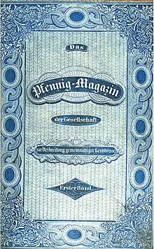 1. 1 2 "Das Pfennig-Magazin (1833 – 1855)". Das Pfennig-Magazin der Gesellschaft zur Verbreitung gemeinnütziger Kenntnisse, In der Expedition des Pfennig-Magazins (F. A. Brockhaus), Leipzig. Peter Michael Sporer i.A. ngiyaw eBooks, Vezseny. Retrieved 22 March 2016.