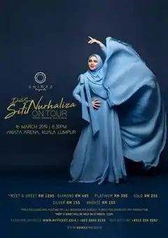 Dato' Sri Siti Nurhaliza On Tour is an Asian concert tour by Malaysian singer Siti Nurhaliza. The concert was held on February 21 to March 16, 2019, to coincide with 24th anniversary of Siti's musical career.[1] Estimated at a budget about RM10 million, Siti Nurhaliza on Tour was touted as the most expensive concerts in the Malaysian entertainment history.[2] Siti went on planned to embark her concert tour in London which scheduled in April.[3][4]