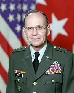 David Kyte Doyle (8 December 1931 – 8 May 2021) was a lieutenant general in the United States Army who served as Assistant Chief of Staff for Information Management.[1] An alumnus of the University of Maryland, he was commissioned following completion of Officer Candidate School. Doyle received a B.S. degree in military science from the University of Maryland, an M.S. degree in international relations from George Washington University and a Master of Military Arts and Sciences degree from the U.S. Army Command and General Staff College.[2]