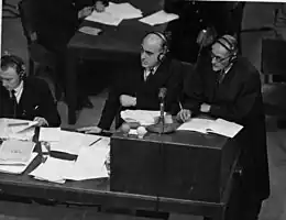 Sir David Maxwell Fyfe (centre) and an unknown prosecutor at the Nuremberg trials