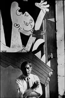 Pablo Picasso in Front of Guernica, 1937, by Chim.