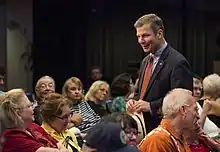 Simpson did not seek re-election to the House in 2016. Instead he ran, against Conservative Bryan Hughes, a Mineola lawyer, for the District 1 seat in the Texas State Senate seat held since 2004 by Moderate Republican Kevin Eltife, a former mayor of Tyler, who did not seek reelection. Eliminated in the March 1 primary was the two-star United States Army General James K. "Red" Brown of Lindale, and businessman and lawyer Mike Lee. However, both Hughes and Simpson moved on to a runoff that was held on May 24, 2016.[19] In the contest against Simpson, Hughes carried the backing of Lieutenant Governor Dan Patrick, the presiding officer of the state Senate. Hughes won the runoff in a landslide.[20]