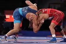 David Morris Taylor III (born December 5, 1990) is an American freestyle and graduated folkstyle wrestler who currently competes at 86 kilograms.[2] In 2021, Taylor became the 2020 Olympic gold medalist after defeating reigning Olympic and World Champion Hassan Yazdani, a feat he repeated from the 2018 World Championship where he stormed his way to the title.[3][4] He later became the 2021 World Championship runner-up, after being defeated by Yazdani.[5] Then, at the 2022 World Championships, he avenged that loss by defeating Yazdani once again to reclaim his world title.[6]