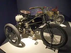 The De Dion-Bouton tricycle was the most successful motor vehicle in Europe from 1897 until 1901. With about 15,000 copies sold,[lower-alpha 1] the de-Dion-Bouton motor tricycle scored the first breakthrough for the distribution of motor vehicles.[1] In particular the fast-running de Dion-Bouton engine set new standards for vehicular motors, and is regarded as the precursor of all motorcycle engines.[2]