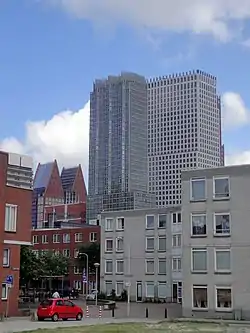De Kroon (English: The Crown) is a residential and office skyscraper in the Center of The Hague, Netherlands. It is 131.5 metres (431 ft) tall and contains 41 floors, making it the sixth tallest building in the city. It contains 6 floor of office space combined with 13 floors of public housing, and 27 floors of houses for sale. Construction of De Kroon started in 2008 and ended in 2011. It was designed by architectural firm Rapp + Rapp and built by MAB Development BV.
