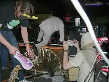 The band has consisted of members based in Bellingham, Olympia, Seattle, Salem, and Portland. The three core members are located in St. Johns, Portland.[5] Because of their penchant for anonymity, masks, and costumes,[1][8][9] there is no definitive list of the group's membership.[3] Nonetheless, several publications covering either the experimental music scene or entertainment in the Pacific Northwest have reported them to have included at various times members of such bands as Olympia's now defunct Karp, Austin, Texas' ...And You Will Know Us By the Trail of Dead, Bellingham, Washington's Noggin, and Portland, Oregon's Nice Nice.[10][11] In Signum magazine, writer Tiffany Lee Brown implies strongly that Olympia Experimental Music Festival founder Jim McAdams is one of the anonymous musicians in the group.[12] Matt Driscoll of the Weekly Volcano (South Puget Sound) states this outright.[11] Emily Pothast in The Wire states that Ricardo Wang, host of the "What's this Called?" program on Freeform Portland Radio is a member.[13] This was confirmed in a 2023 St. Johns Review article. Wang's two sons are also considered regular members.[5]