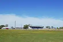 The Deloraine Agricultural Society had formed in 1888 and a fair grounds created, the agricultural society created a half-mile track which hosted harness racing. In 1928 a grand stand was built on the site as the post-war popularity of the fairs and races spiked when they were restarted following World War I.[5] Like many prairie communities, Deloraine was profoundly and negatively affected by the Great Depression. The community did see some growth in this decade through stimulus efforts when the Canadian government built the new Dominion Post Office Building in 1930. The community endured the decade until better times both economically and environmentally returned around 1939.[6]