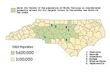 North Carolina has three major Metropolitan Combined Statistical Areas with populations of more than 1 million[7]