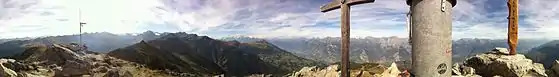 The Dent de Nendaz (literally "Tooth of Nendaz") is a mountain of the Swiss Pennine Alps, overlooking Nendaz in the canton of Valais. Its 2,463-metre-high (8,081 ft) summit can be easily reached from the cable car station of Tracouet (2,200 m).