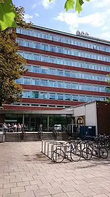 After the 2nd World War three more laboratories were built further down Burlington Street; these were the Dixon Laboratory (1946), the Robinson Laboratory (1950) and the Lapworth Laboratory (1950);[10] all three were vacated in the 1960s when the present building in Brunswick Street was available. The architect for the present chemistry building was H. S. Fairhurst & Son.[11]