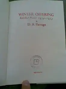 His last book of poetry, Winter offering: selected poems 1934–1953, was issued by the Leavisite Brynmill Press in 1990.[10]