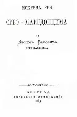 • Искрена реч Србо-Македонцима. Belgrade: Трговачка Штампарија. 1885.