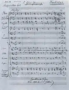 ![]() Hand-written transcription, from 1870 (long after Schubert's death), of the first page of the movement "Zum Eingang" (Introit) | |
