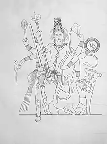 A sketch of Durga from a 6th century temple sculpture, Aihole, Karnataka.