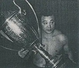 He first entered the ring in the Summer 1928 tournament. In 1932, he was one of the few unsalaried wrestlers to be expelled from sumo by the Japan Sumo Association for being involved in a strike called the "Shunjuen Incident" that was largely unsuccessful. He, along with many others, was allowed back in from the Spring 1933 tournament. He was allowed into the makushita division, but unranked.[1] His hiatus seemed to have recharged his sumo, as he posted eight winning tournaments over four years from this point. In this period, he also took the makushita championship in the Summer 1933 tournament, and after entering jūryō, in the following tournament, took the jūryō championship with a perfect 11–0 record in the Summer 1934 tournament.