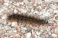 Larva dark brown, with foxy red hairs, light dorsal line spotted with red, and white stigmata. The larvae feed on various shrubs and herbaceous plants. Species in the genera Galium, Plantago, Taraxacum, Epilobium and Urtica.