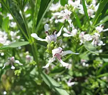 Justicia americana, the American water-willow, is a herbaceous, aquatic flowering plant in the family Acanthaceae native to North America. It is the hardiest species in the genus Justicia, the other members of which being largely tropical and subtropical, and it is able to survive as far north as USDA zone 4. It is common throughout its range.