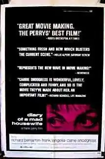 Diary of a Mad Housewife is a 1970 American comedy-drama film about a frustrated wife portrayed by Carrie Snodgress.[2] Snodgress was nominated for the Academy Award for Best Actress and won a Golden Globe award in the same category. The film was adapted by Eleanor Perry from the 1967 novel by Sue Kaufman and directed by Perry's then-husband Frank Perry. The film co-stars Richard Benjamin and Frank Langella.[3]